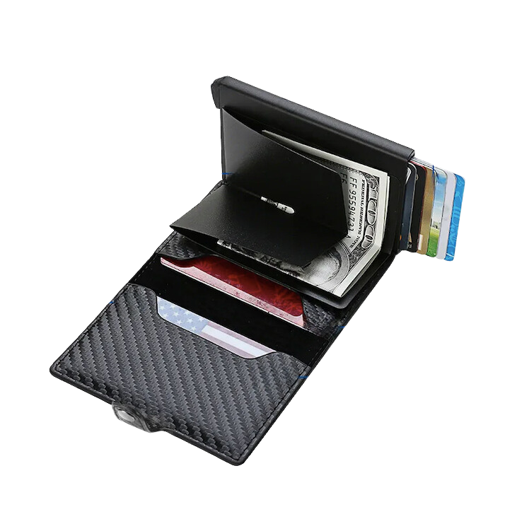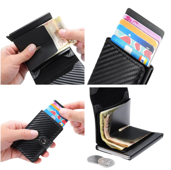 Protege tu dinero con la billetera que bloquea toda señal RFID y mantiene tu información segura.”