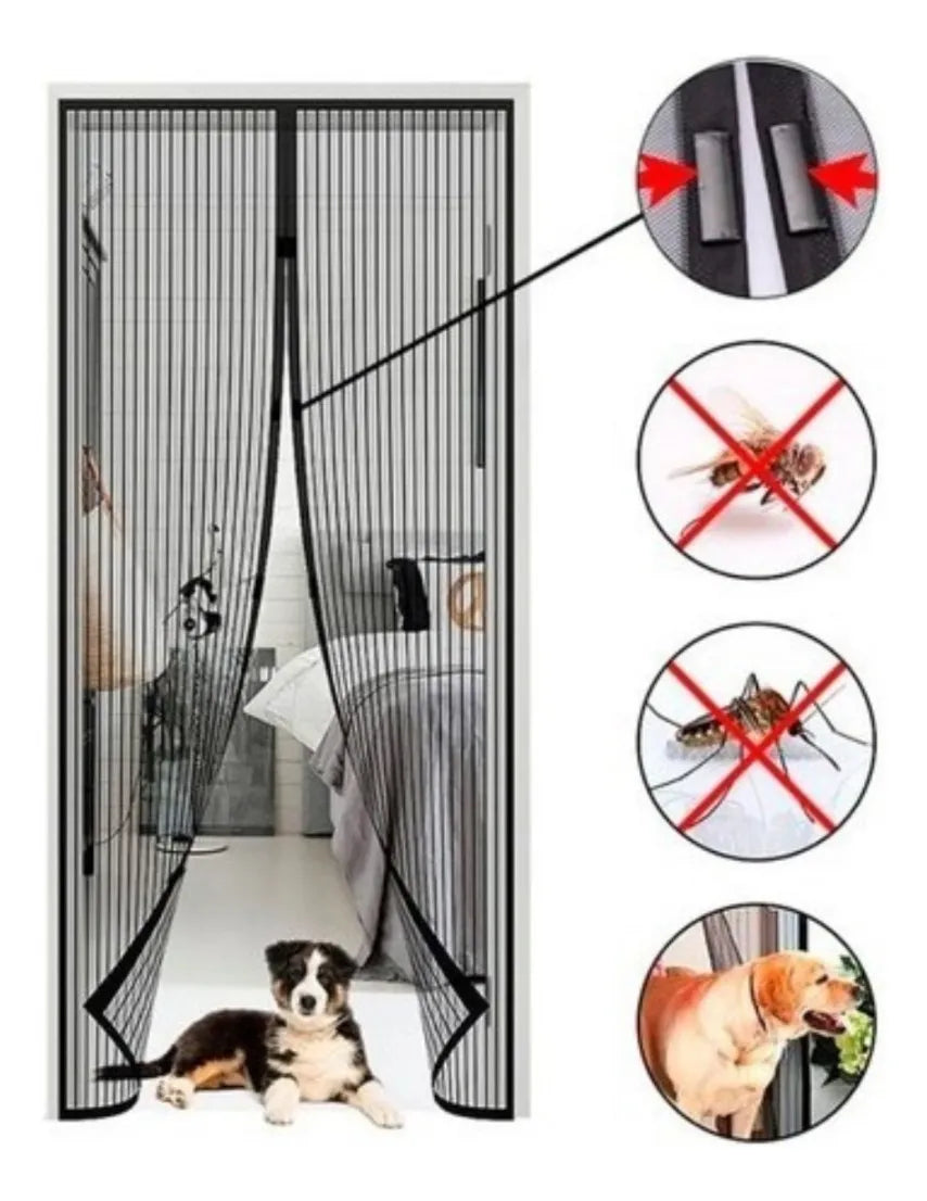 Te presentamos la Cortina Magnética con Cierre Automático, diseñada para mantener fuera los insectos sin impedir el paso del aire fresco ni de tus mascotas.